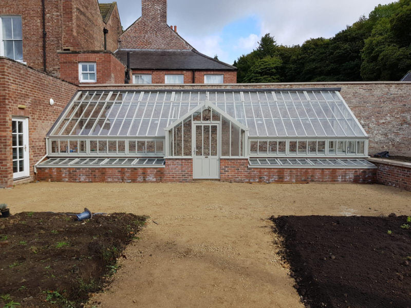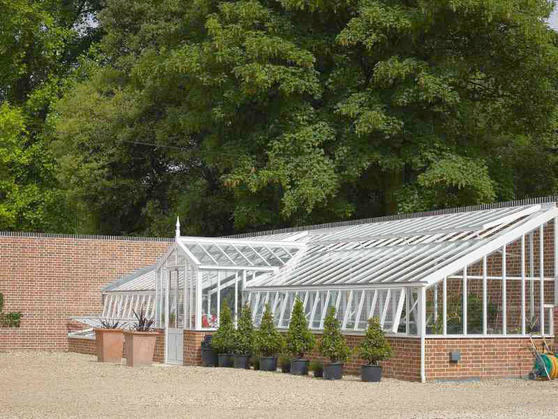 Lean-to Greenhouses are synonymous with walled gardens of period style residences. They are used for good reason. Lean-to Greenhouses on south-facing walls benefit from the sun’s heat warming up the host wall (tall wall against which the Greenhouses leans against) and this heat is released into the Greenhouse over an extended period of time. The temperate climate a Lean-to Greenhouse produces will enhance growing conditions and is ideal for peaches and grapes etc. which can be trained against the host wall or the frame of the Greenhouse.