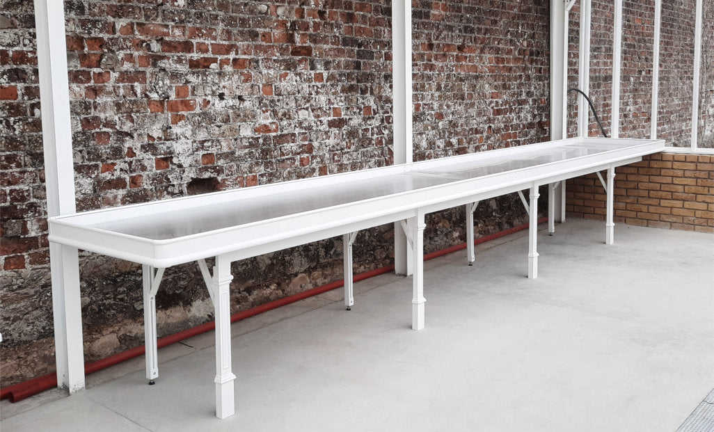 Water can be evacuated from the gutters to the inside the Greenhouse (if ordered at the time of manufacture) so that the water can be stored inside the Greenhouse. The benefit of doing this is that the water stored in tanks inside the Greenhouse will be warmer than good water – and this warmer water avoids giving the cold shock to the delicate roots of the plant in summer months.
