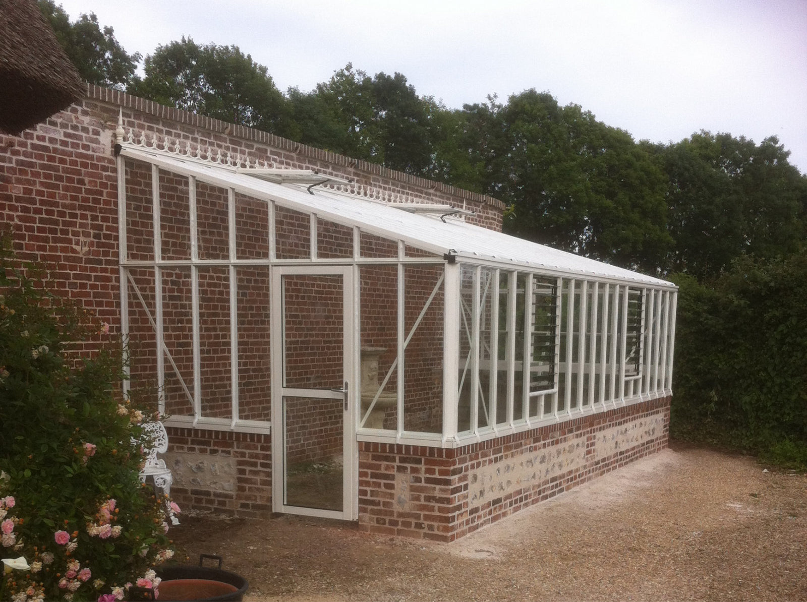 Arcadia Plus Lean-to Greenhouses offer amazing flexibility in design. You can specify the ridge height you would like (within a certain range), special curved and hip gable ends can be ordered and we can even modify the width, length and eave height if needed. This range is made with super strong ‘Professional Orangery’ box section aluminium profiles and as the structure is fixed to a masonry wall the result is
