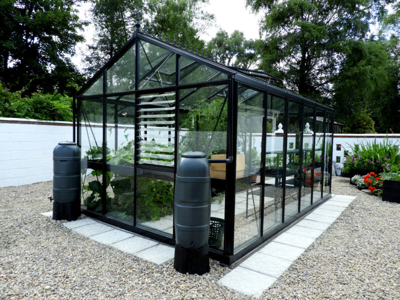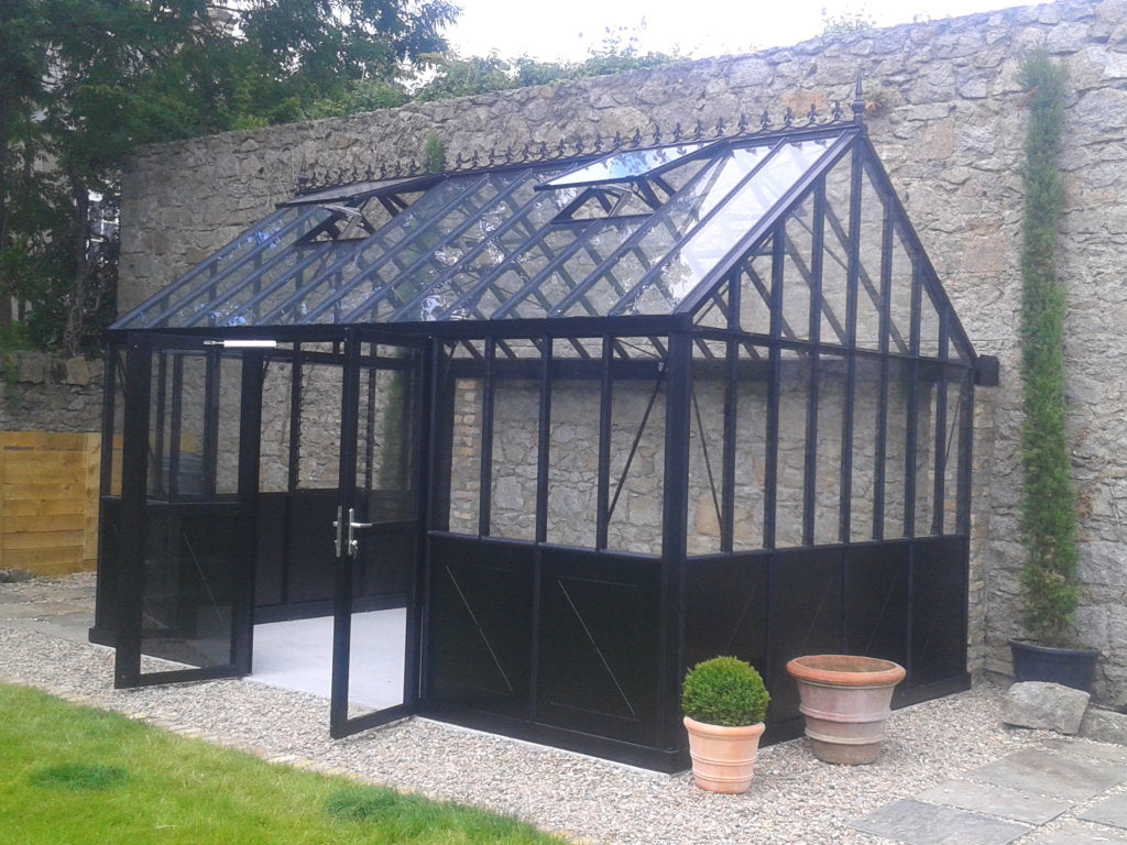 A greenhouse with a steep roof pitch reminiscent of traditional Victorian Greenhouses. Made with strong box section aluminum profiles giving optimum strength and value for money. This range is customisable so you can personalise your Greenhouse from a wide range of options to meet your exact requirements.