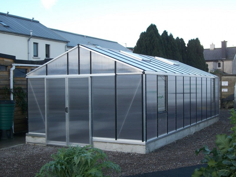 Greenhouses without powder coating or anodising of the aluminium frames. This makes them a little cheaper, but over time the frame will weather. Great where budget is important and aesthetics are not.