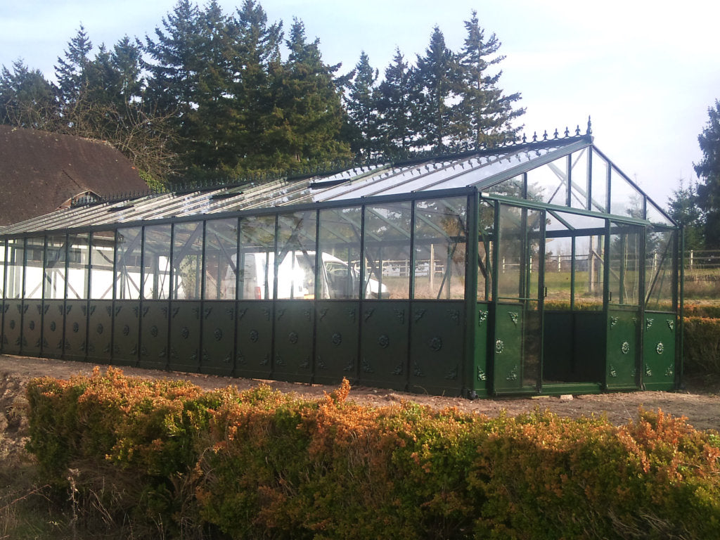 ‘Glass to ground’ aluminium Greenhouses with a very durable polyester powder coated finish available in a wide range of colours.