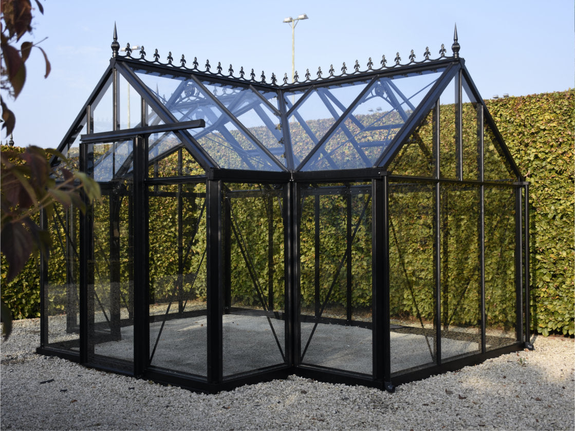 The Junior T with it’s elegant design and porch makes for a beautiful feature in the garden. Made with Janssens’ box section aluminium profiles it is an investment in quality and strength. The porch detail apart from being an attractive feature creates more space inside.