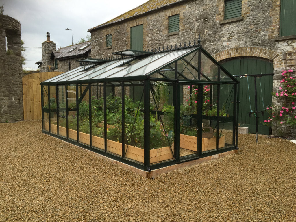 The Senior Coloured Greenhouse is made in a choice of a lovely dark Green (RAL6009) or an elegant Black (RAL9005) powder coated finish.