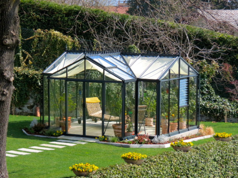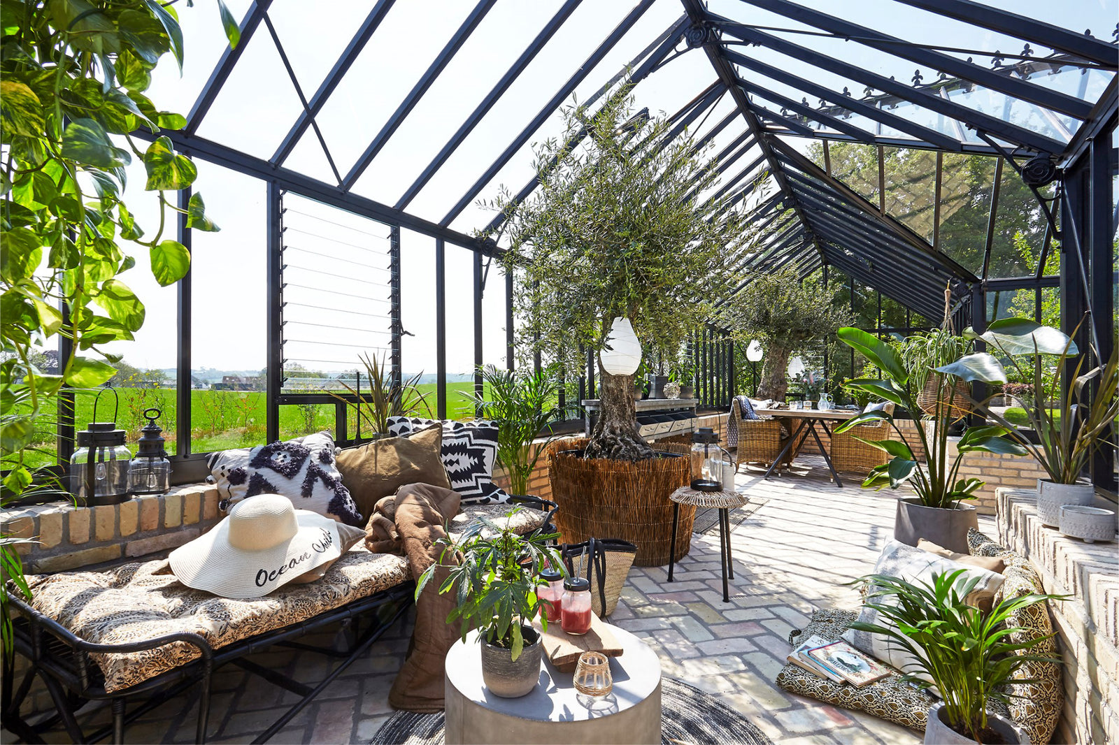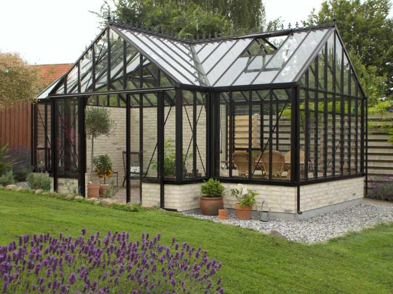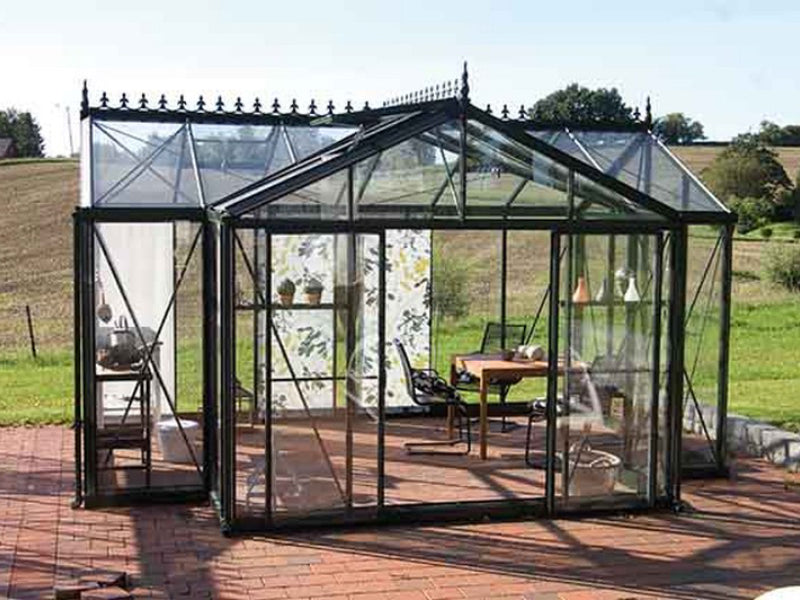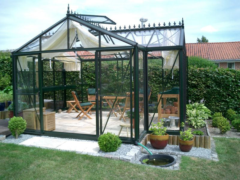 A T model is Janssens' name for a Greenhouse with a protruding porch. The porch makes the Greenhouse an attractive feature in the garden and provides extra room inside.