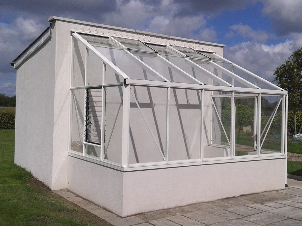 The Dwarf Wall Arcadia Lean-to Greenhouse makes an attractive feature in the Garden and the Dwarf Wall has practical benefits also of allowing raised beds to be built up against the inside of the walls and for cold frames to be built against the outside of the Greenhouse also.
