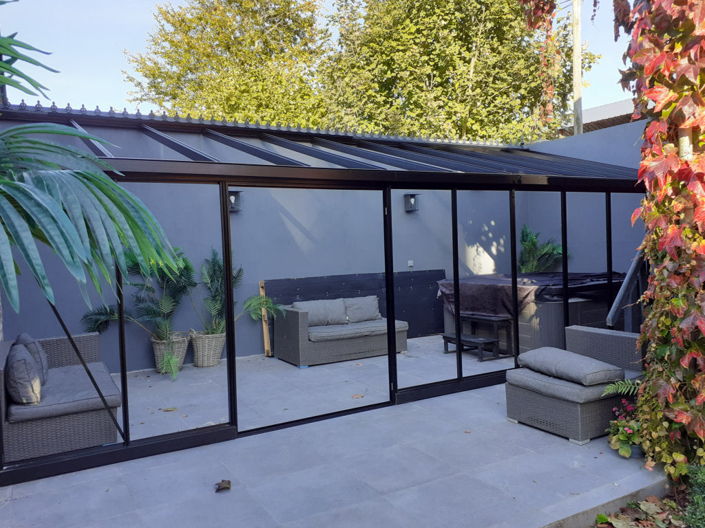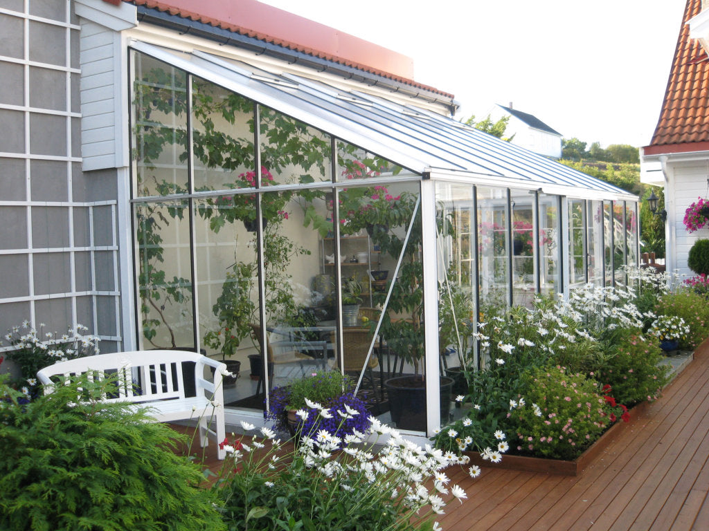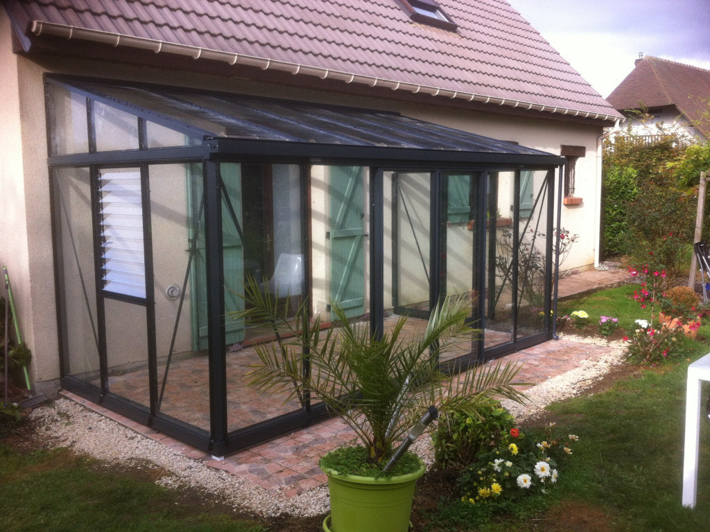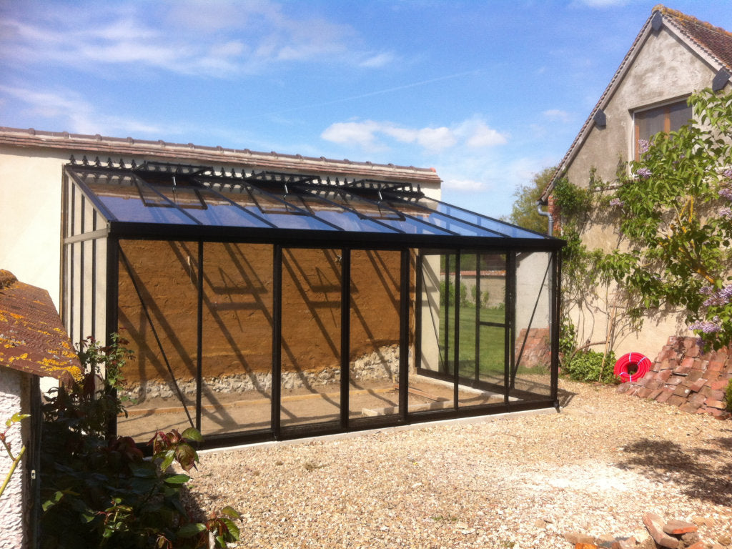 The Arcadia Plus Lean-to is a super strong Greenhouse made with large aluminium box section profiles. This is a custom model with great range of features you can choose from including wide or narrow panes of toughened glass and you can even choose the roof angle.