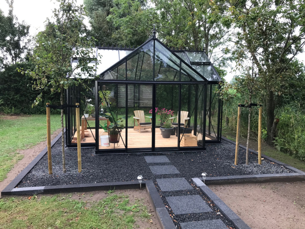 Elegant Victorian Style Greenhouses with a porch which makes a lovely feature in the Garden as well as giving extra space. The Eos models have a steep roof angle providing a traditional look.