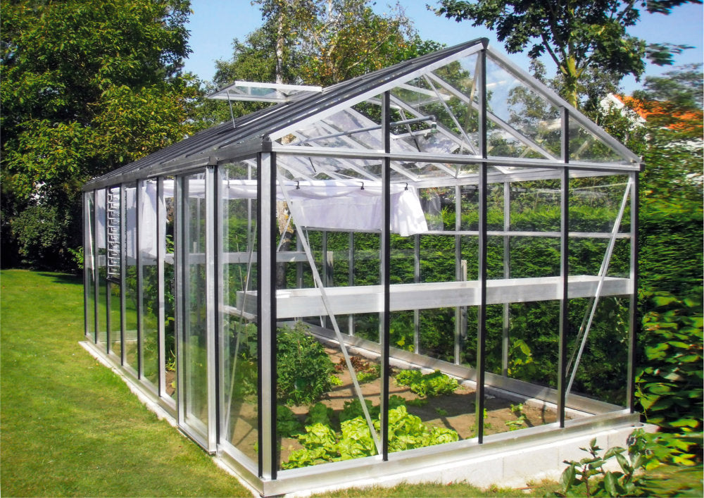 Helios 200 ‘Mill Finish’ Greenhouses are made with strong ‘box section’ Janssen aluminium profiles. The aluminium used in this ‘Mill Finish’ model doesn’t have a powder coated or anodised finish and will tarnish or weather with age. Doors can be fitted at the side or end of the Greenhouse as you prefer and have good height at 1.85m (6ft 1 inch approx.). Supplied with 4mm toughened glass as standard and available in many different standard sizes, the Helios 200 comes with lots of ventilation included as standard. Being one of the ‘custom’ range from Janssens there are many possible choices available such as wide or narrow panes of Glass or twin wall polycarbonate, various types of doors etc. so you can really configure a Greenhouse that meets with your specific needs and preferences.