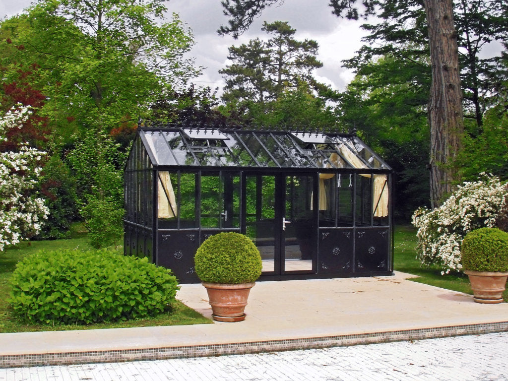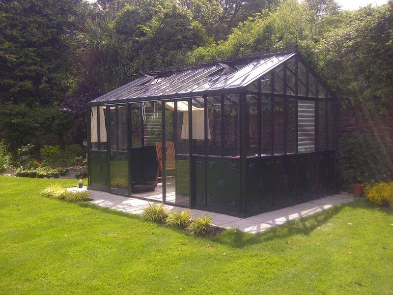 An aluminium panelled Greenhouse is often used as a garden room, somewhere to relax in and perhaps pursue a hobby.