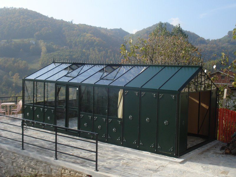 Helios 200 ‘Aluminium Panel’ Greenhouses are made with strong ‘box section’ Janssen aluminium profiles which are polyester powder coated in a choice of a lovely dark green colour (RAL6009), an elegant black (RAL9005), or a stunning white (RAL9010). They can be powder coated in other RAL colours for an extra cost.