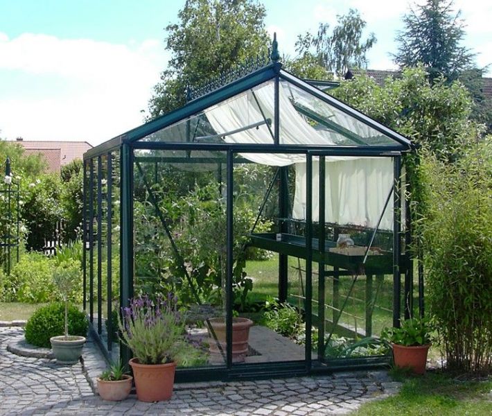 Helios 200 ‘Coloured Finish’ Greenhouses are made with strong ‘box section’ Janssen aluminium profiles which are polyester powder coated in a choice of a lovely dark green colour (RAL6009), an elegant black (RAL9005), or a stunning white (RAL9010). They can be powder coated in other RAL colours for an extra cost.
