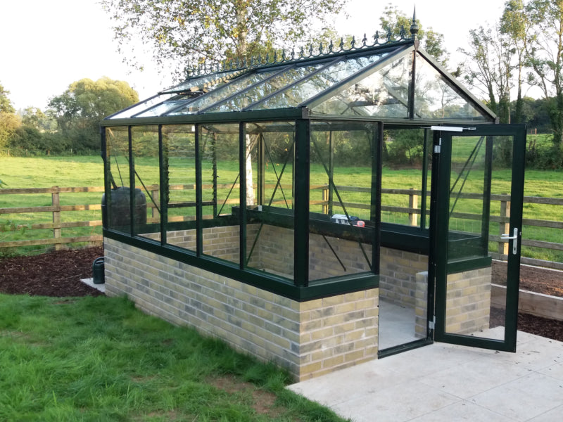 A Dwarf Wall Model Greenhouse makes an attractive feature in the Garden, the Dwarf Wall being reminiscent of Victorian Greenhouses, but the Dwarf Wall is practical too allowing raised beds to be built up against the walls inside the Greenhouse and the temperature is apparently a little warmer in winter and cooler in summer than ‘glass to ground’ Greenhouses.