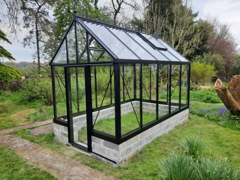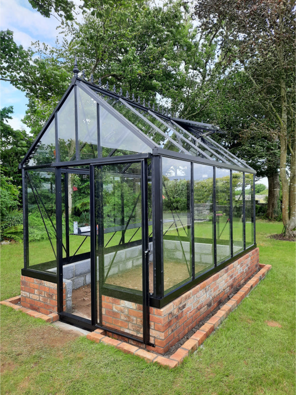 This greenhouse is designed to sit on a Dwarf Wall of 400mm height, which is not included.